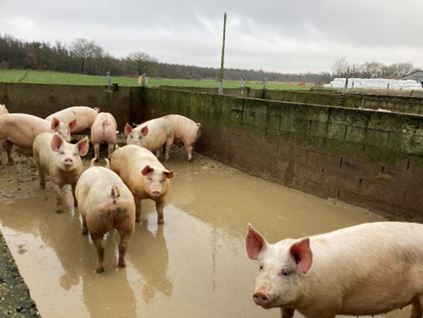 “Ved kontrollen blev det konstateret at 9 grise gik i aflastningsfold. Dyrene var taget fra fordi de bed haler i stalden. Folden var mudret og optrådt. Dyrene skulle igennem mudder og vand for at komme til foder og vandtrug.”