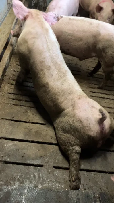 Fødevarestyrelsen så andre grise, der havde kraftige smerter og led. Det er mest tydeligt på videoen med grisen, der ikke kan rejse sig op, og hvor bagbene trækkes henover gulvet. Fødevarestyrelsen skrev om den gris, at det så ud til at grisen var skredet ud i bagparten, hvilket er en noget vag formulering for noget der er så tydeligt, og endda dokumenteret på video. Ikke engang når der sparkes til grisen kommer grisen op.