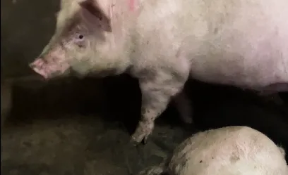 I stalden gik en gris, der tydeligt havde store smerter. Grisen stod med krum ryg, tilbagetrukne ører og rystede, mens den gispede efter vejret og skreg af smerte. Kroppen var bleg og udmagret, og det var en gris, der for længst burde have fået hjælp. Da kontrollen senere vendte tilbage til stien, var grisen død. Ud fra grisens lave huld (mager krop) og blege krop vurderes det, at lidelsen havde stået på i længere tid, og at grisen burde have været tilset og aflivet tidligere. Fødevarestyrelsen har ikke dokumenteret dette med billede eller video.