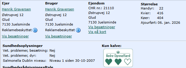 Kopieret fra Fødevarestyrelsens CHR register den 7. januar 2026