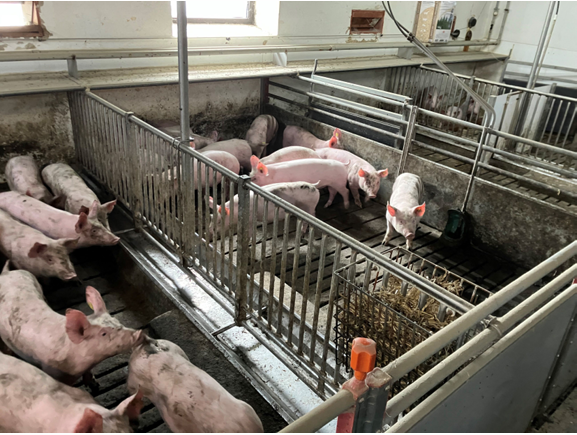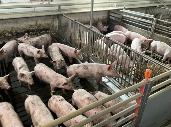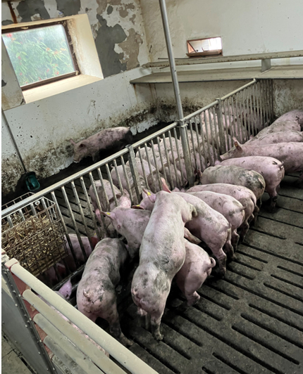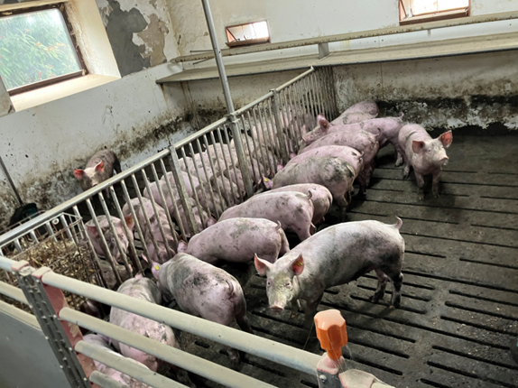 På svinefabrikken med CHR nummer 95097 holdes der knap 6.000 grise. De fleste er mellem 7 og 30 kg, mens de øvrige er over 30 kg, og de vokser indtil de er ca. 100 kg som seks måneder gamle, hvor de sendes til slagteriet. På det tidspunkt har de kun opholdt sig i en betonstald. De har aldrig været udenfor.